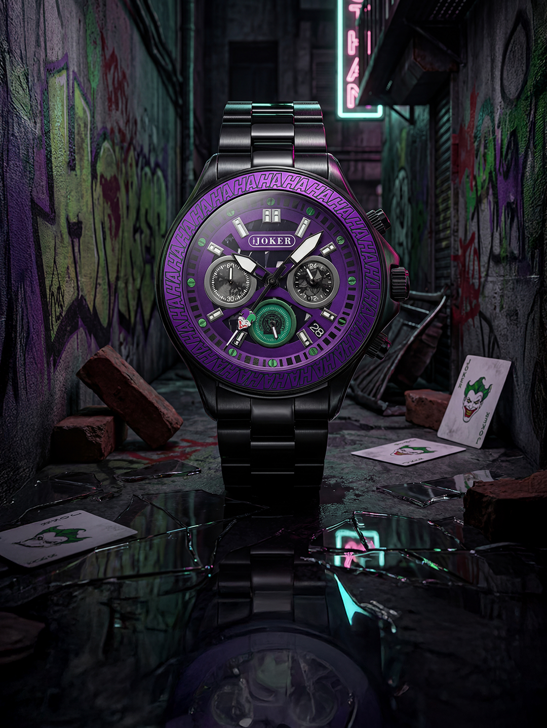 - The Joker – Chaos Timekeeper: Bezel engraved with a manic "HAHAHA" and toxic green lume that "laughs in the dark."