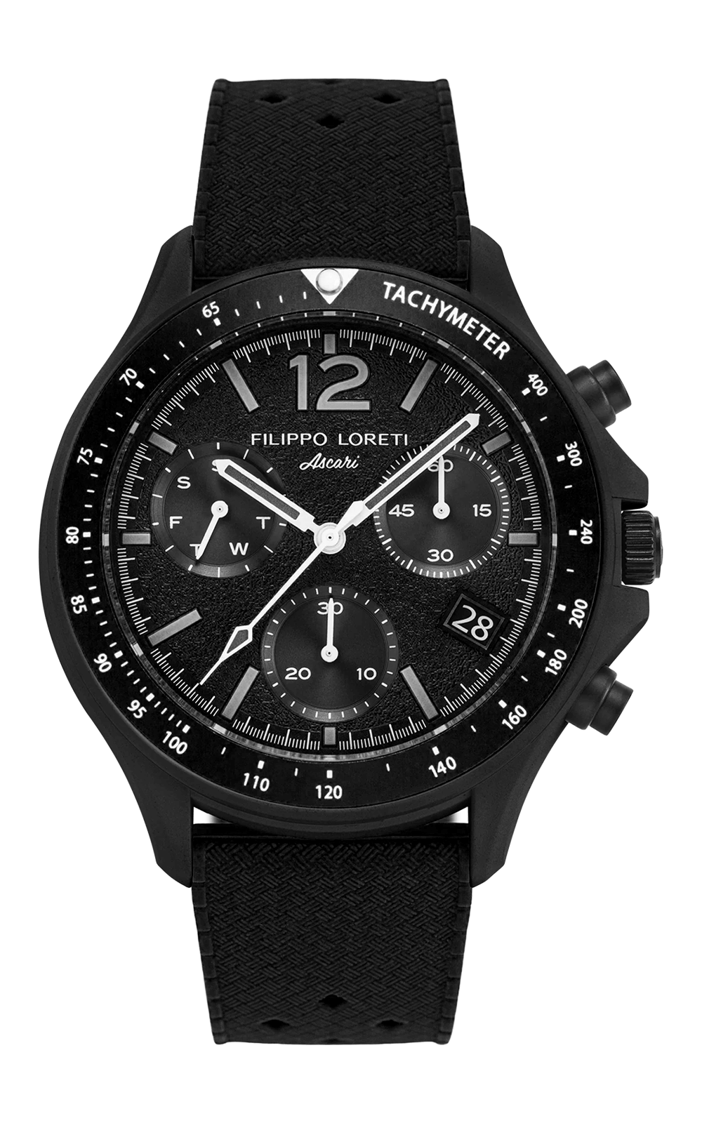 Built with advanced nano-ceramic materials for unparalleled durability with the lightweight agility of high-performance race cars. These watches symbolize the mighty and unstoppable spirit of a racing legend. The Ronda Z60 Movement ensures reliable timekeeping, while the multifunctional dial with three subdials and six hands offers both practicality and style. As you wear them, you carry with you the spirit of Ascari, a constant reminder that with focus, precision, resilience, and balance, triumph is within reach before the race begins.